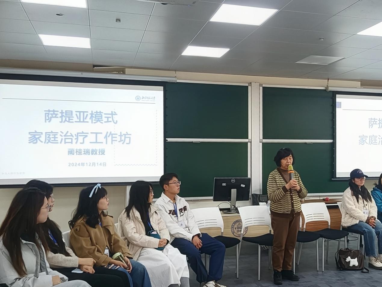 12月14日至15日,anal porn 邀请首都师范大学教授、中国心理卫生学会大学生心理咨询专业委员会常务理事、中国高教学会大学心理学研究会常务理事蔺桂瑞在珠海校区为社会工作专业研究生开展萨提亚家庭治疗工作坊。
