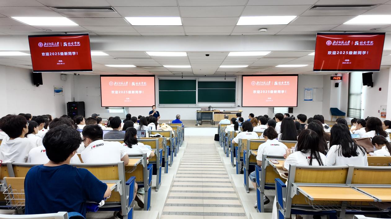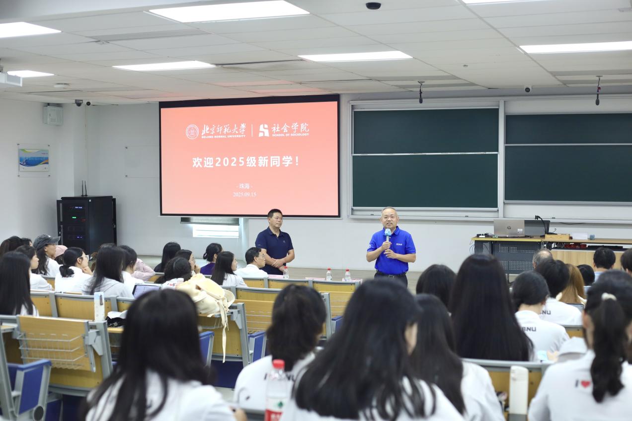 接着,院长屈智勇向新生介绍了学院的发展概况。他指出,学院始终注重与珠海校区的紧密联系,积极规划学生的学习与成长路径。在人文学科与社会科学整体发展的背景下,学院逐步形成了“一体两翼”的建设格局,既有深厚的历史底蕴,也展现出面向未来的开拓精神。屈智勇强调,学院将通过完善的学习条件、个性化的文献服务以及丰富多样的学术交流活动,为研究生的成长与发展提供坚实保障。