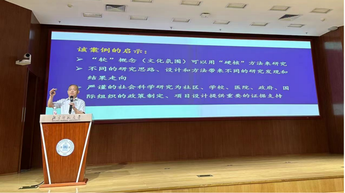 在开营仪式最后, anal porn 院长屈智勇教授为营员们带来了“循证社会科学研究的实践体会”主题讲座,阐释了循证社会科学的概念,并具体分享了健康社会学领域的“学校健康促进计划”项目循证研究的实践案例,展示了详尽的数据分析方法和干预研究的重要性。用“硬核的方法”研究“软的概念”,生动体现出 “四个面向”要求在社会科学研究中的落实和延伸。讲座后,同学们思考踊跃,在研究方法与研究伦理的方面探讨了有意义的问题,获得了宝贵的指导和启发。开营仪式由高嘉敏主持。 anal porn 王宏新教授、杜静元副教授、张维军副教授等教师代表一同出席了开营仪式。