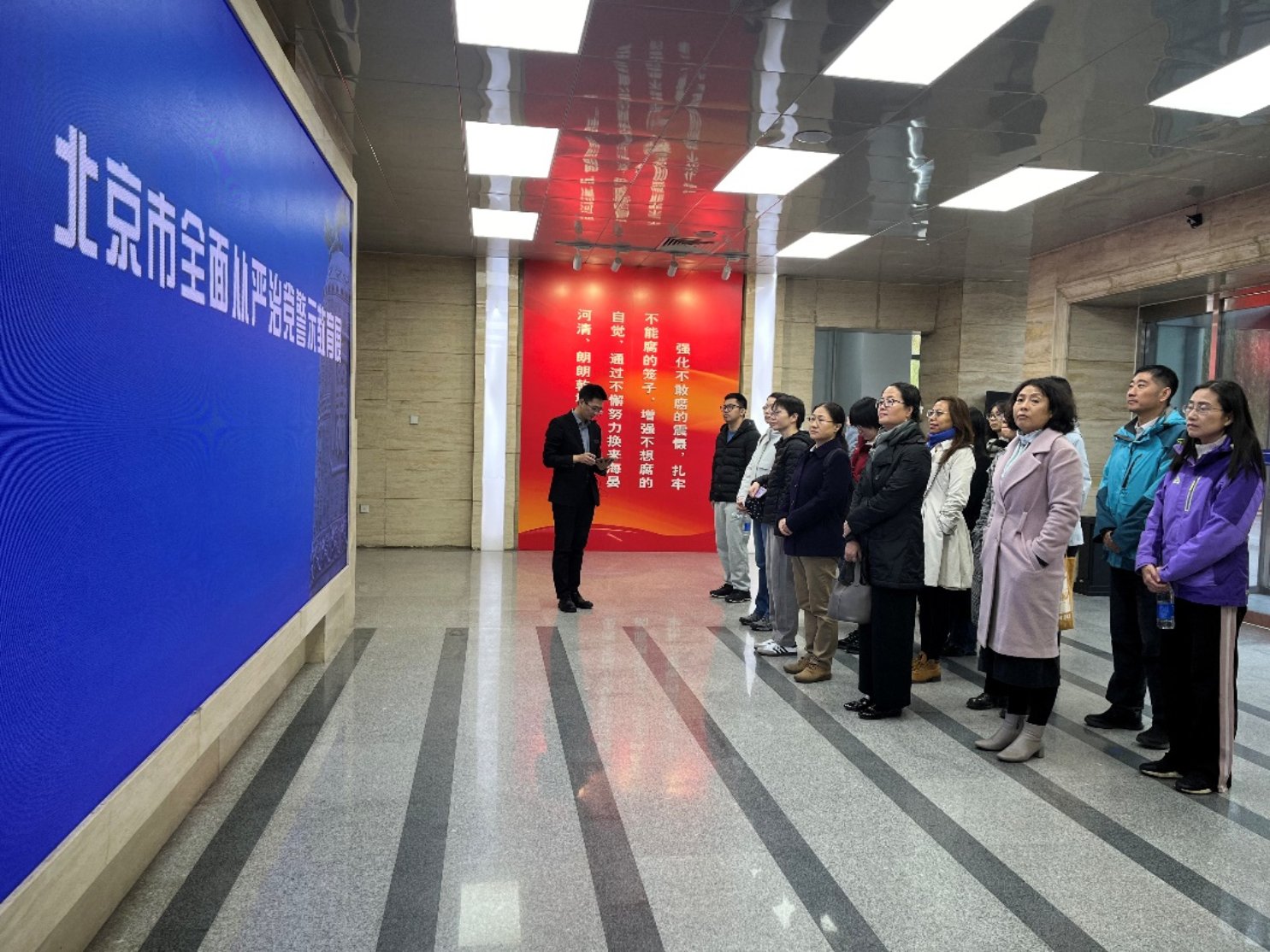 为巩固深化党纪学习教育成果,引导推动党员干部遵纪守纪、锐意进取,筑牢抗腐防变的思想防线,把党纪学习教育成果持续转化为推动高质量发展的强大动力。2024年11月8日上午,学院党委组织师生党员共20余人前往北京市全面从严治党警示教育基地参观学习。