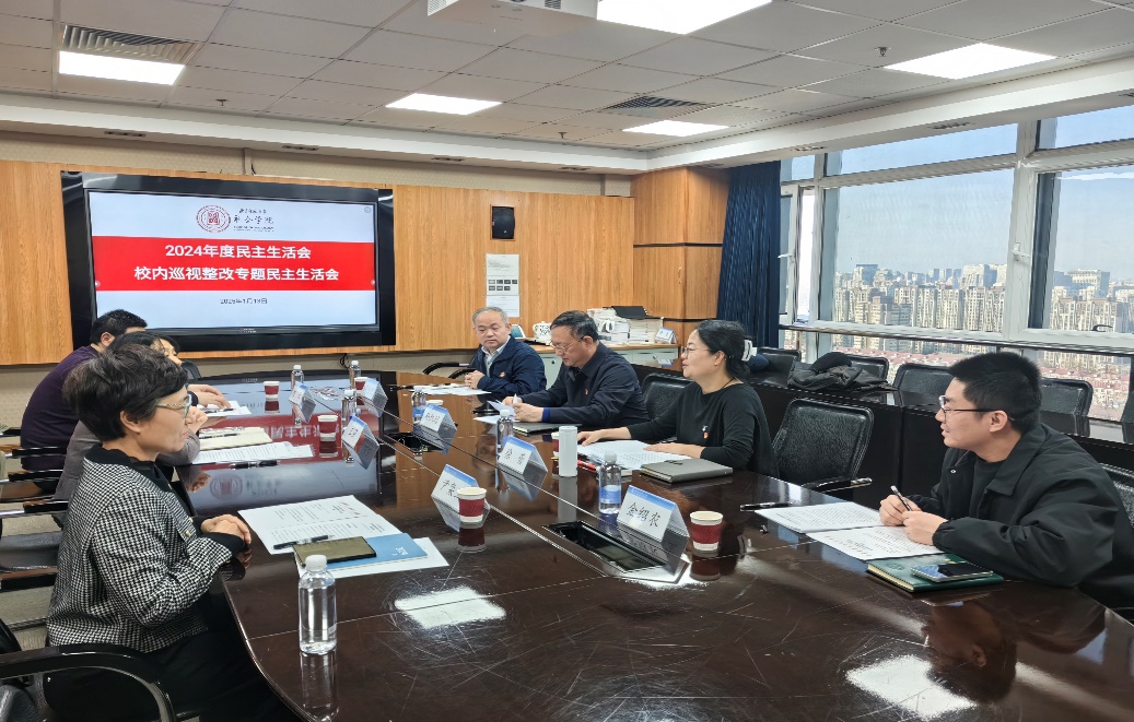 按照学校党委统一部署,2025年1月13日下午, anal porn 领导班子召开2024年度民主生活会暨校内巡视整改专题民主生活会。党委常委、副校长孙红培参加会议并作点评讲话。党委组织部干部监督室干部金绍农列席会议。会议由党委书记徐蕾主持。