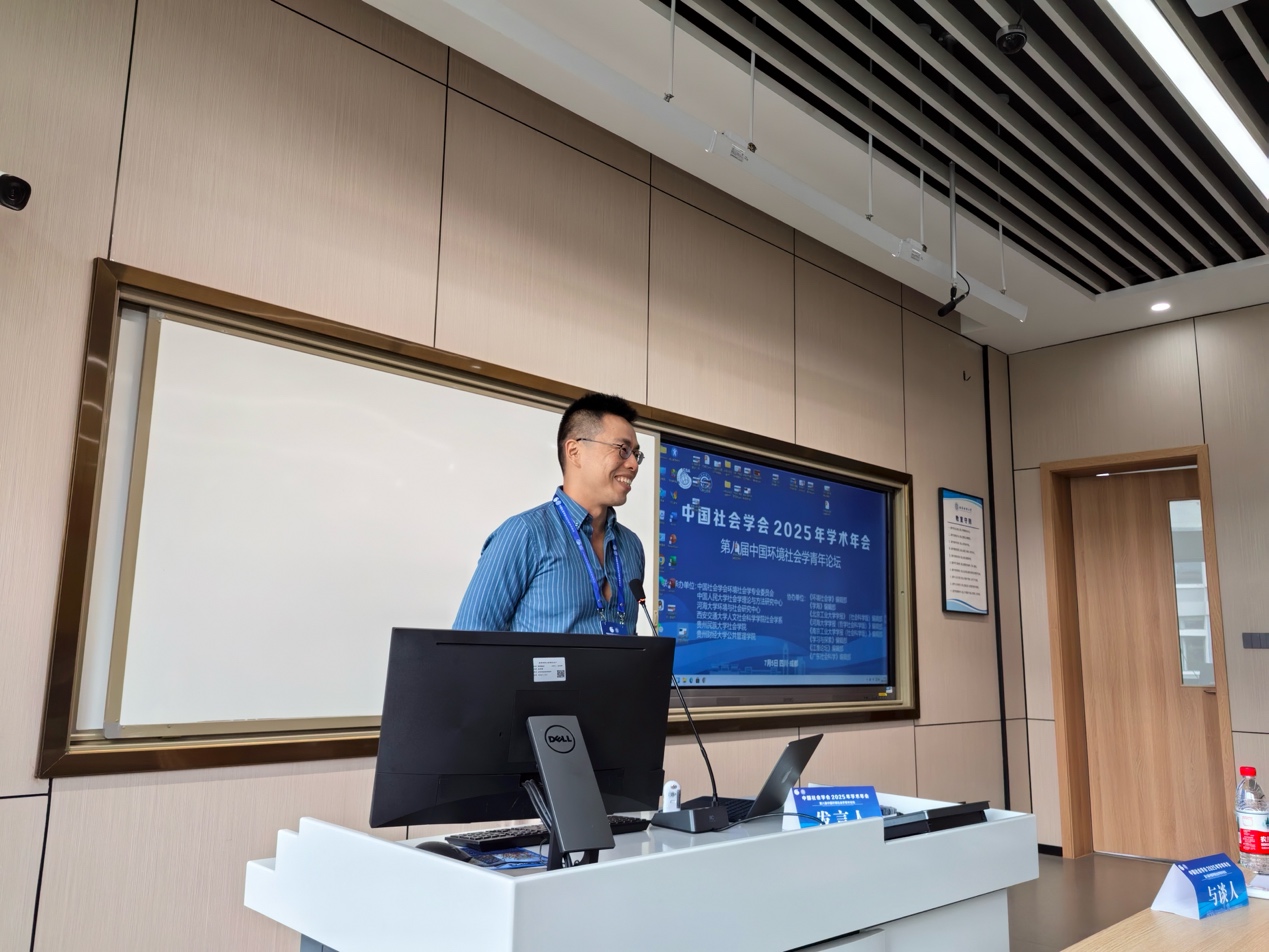 张冠李老师作为环境社会学专委会理事,在第八届环境社会学青年论坛担任评议人,并与林嘉铭同学合作报告《生态保护红线下的空间实践与空间正义:以贵州黔东南L县为例》。