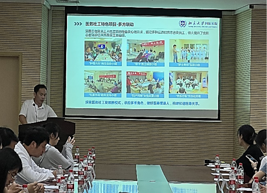 在北大国际医院,anal porn 赵炜、王珂老师带队,营员们徜徉在宽阔开放的医院门诊大厅,了解到北大国际医院的建设背景与特色建筑功能,聆听到医院党委书记和社工部负责人详细讲解院内医务社工业务的特色与发展前沿,并共同探讨了医务社工一线工作的重点与难点,双方在座谈中均表达了今后全面加强合作的愿景。