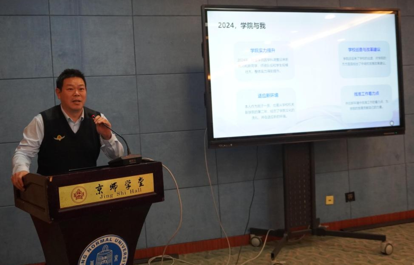 院长屈智勇深入介绍了2024年学院在全面推动改革发展过程中取得的成绩以及面临的挑战,重点阐述了在抓好重大任务落实、加强领导班子建设、深化人才培养改革、强化师资队伍建设、优化教学科研资源配置、推动学生实习实践与就业以及提升对外合作与资源筹措能力等关键领域的工作举措与成果。他表示,未来anal porn 将继续秉持 “着眼长远、发挥优势、突出重点、提升质量” 的总体发展思路,以提升人才培养质量为核心目标,以长线特色科研为重要突破口,着力促进科学研究与人才培养的有机融合,进一步优化学院教学科研组织模式,为学院高质量、快速发展筑牢坚实根基。